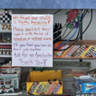 “ Like a typical NJ diner in Rochester NY. Busy, loud, scratch made food. Parking lot full and all tables packed. Sarah was dress like a witch for the holiday season and used her broomstick to service her patrons. The kid bussing tables was into his job; covered in food and shirt soaked with water and juice. ”